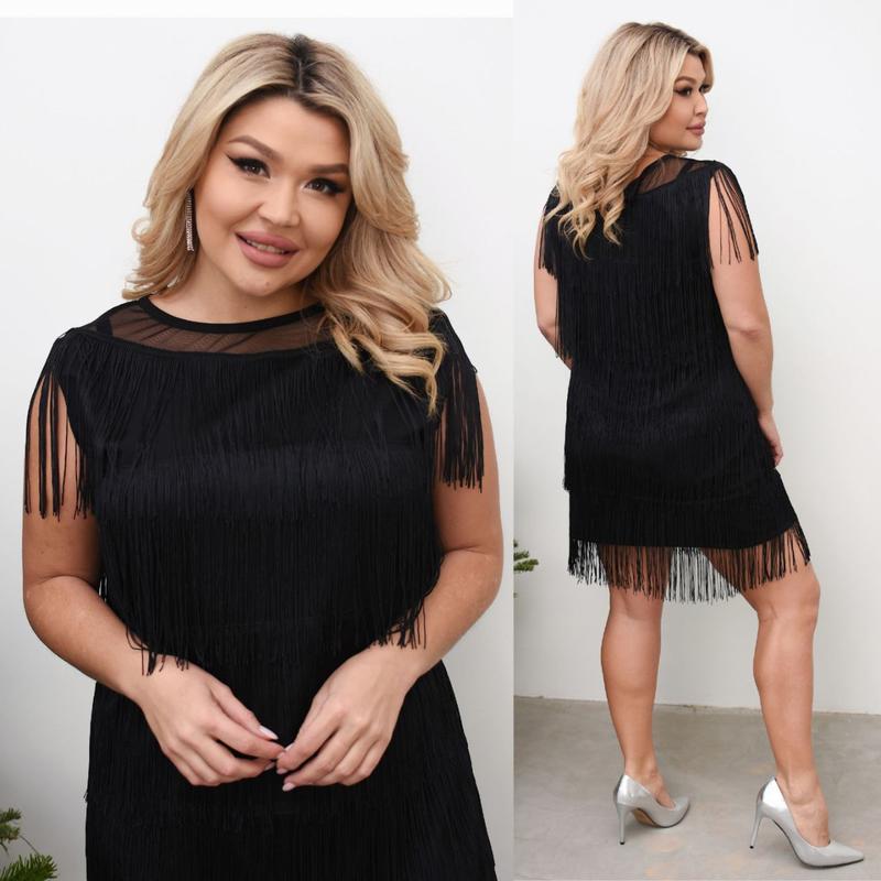 Святкова сукня🥂 🔵Мод 065 🔵Ціна: 930 грн 🔵Розміри: 42-46, 48-50, 52-54 🔵Тканина: креп дайвінг+ бахрома. 🔵Кольори: чорний Виміри👇👇👇 42-46 ОГ 92-96 ********** ОГ 100-104 ОС 104-108 52-54 ОГ 108-112 ОС 112- 116 Довжина виробу 85/90 см.