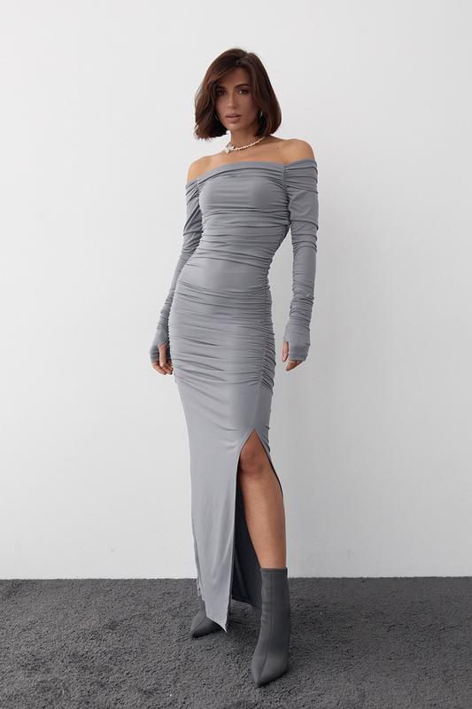 ЗАМІРИ ВИРОБУ Ширина під проймами рукавів (над грудьми), см S - 30см; M - 32см; L - 34см Довжина рукава від горловини, см S - 86см; M - 86см; L - 86см Довжина рукава по внутрішньому шву, см S - 65см; M - 65см; L - 65см Ширина по стегнам S - 34см; M - 36см; L - 38см Ширина по талії/поясу, см S - 26см; M - 28см; L - 30см Довжина виробу, см S - 135см; M - 135см; L - 135см РОЗМІРНА СІТКА ХАРАКТЕРИСТИКА ТОВАРУ Країна Туреччина Тканина Біфлекс Склад тканини 95% бавовна, 5% поліестер Параметри моделі 86*60*92 зріст 173 Розмір на фото S ОПИС АРТ. 00188 З такою красивою довгою сукнею ти за лічені хвилини отримаєш ідеальний силует і готовий look на всі випадки життя. Змінюючи взуття та аксесуари, з ним можна створювати ефектні образи для свят та корпоративів. У моделі довжина максі та з лівого боку низ доповнений високим розрізом. Бічні шви основної частини виробу та рукава доповнені драпіруванням на резинці. Низ рукавів має розріз для великого пальчика. Верх сукня з відкритими плечима і доповнений короткою підкладкою з основної тканини.