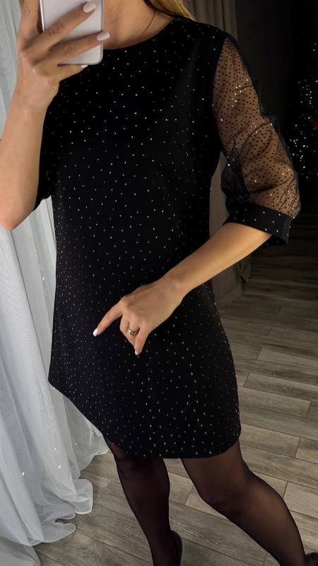 Плаття Арт 491 Тканина креп дайвінг з термокамінням, сітка фатин Колір чорний Розмір 42-44,46-48,50-52 Ціна грн Плаття вільного крою, з рукавом, рукав з манжетом.(ав868)хар Позаду застібається на ґудзик