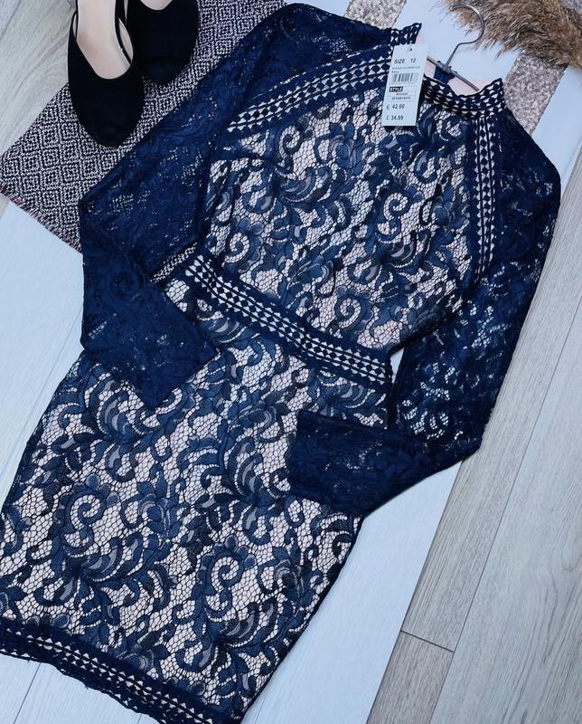 Розгортайте опис🔽 ✨Мереживна вечірня сукня Quiz Розмір:M Стан:нова,з біркою. Склад:100%поліестр. Особливості:темно-синя вечірня сукня по фігурі з прозорими рукавами.Перед та зад на бежевій підкладці.На потаємній блискавці ззаду. ФОТО НА ТІЛІ НЕ РОБЛЮ! Заміри(від шва до шва): Рукав(від горловини)-70 ПОГ-45,тягнеться до 53; Півобхват талії-39; Півобхват стегон-48; Довжина-85; По низу-47
