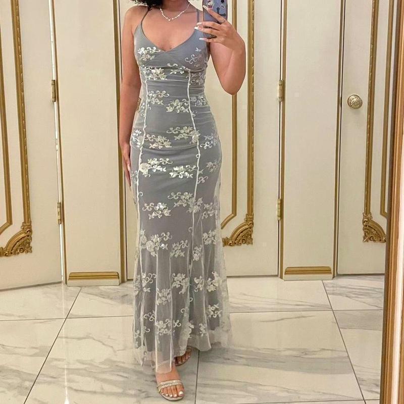 Сукня сіра вечірня з паєтками максі з відкритою спиною