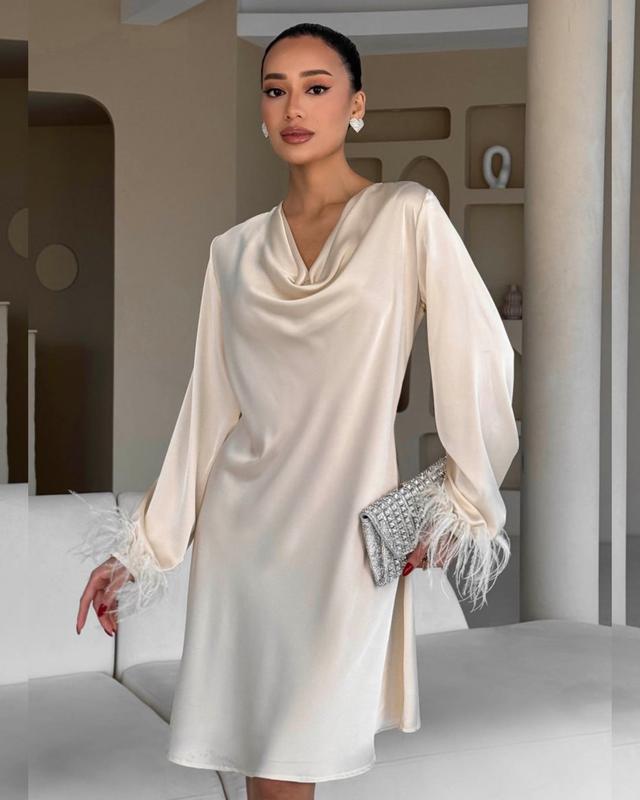 Дуже красива вечірня сукня Стримана, елегантна Пірʼя можна знімати Якісна тканина Шиємо: XS S M L XL Колір: шампань кремовий, чорний
