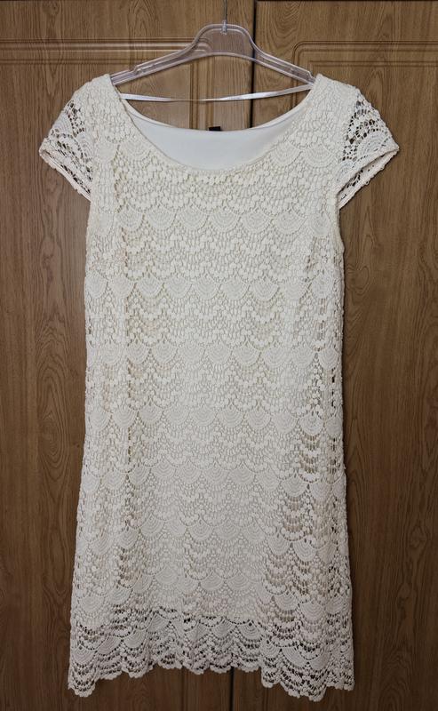 Жіноча сукня з мережива у ніжному молочному кольорі Вдягала близько 5 разів, після цього довго зберігалася в гардеробі Зараз не підходить за розміром, тому продаю Сукня виглядає святково та елегантно, водночас не перевантажена — ідеальний варіант для новорічного вечора, свят, урочистих подій, сімейних заходів. Образ дуже ніжний, як снігуронька ❄️ Завжди ловила багато компліментів, коли була в ній 📏 Заміри ▫️ Напівобʼєм грудей: 50 см ▫️ Ширина плечей: 40 см ▫️ Довжина виробу: 98 см ▫️ Довжина рукава: 10 см ▫️ Силует: прямий, трохи приталений ▫️ Трохи тягнеться ▫️ На зріст 164 см прикриває коліна 🧵 Матеріал і конструкція ▫️ Основна тканина: 100% бавовна (мереживо) ▫️ Підкладка: є по усій довжині плаття, дуже приємна до тіла ▫️ Сукня не просвічується ▫️ Колір: молочний / айворі ✨ Особливості ▫️ Ажурне мереживо по всій довжині ▫️ Акуратний виріз ▫️ Комфортна посадка ▫️ Святковий, ніжний образ ▫️ Добре тримає форму 🎁 Пояс додаю в подарунок — еластичний (на резинці), — цікава декоративна застібка, — дуже гарно підкреслює талію 🔍 Стан ▫️ Хороший стан ▫️ Є незначні сліди носіння ▫️ Маленька жовтизна підпахвою, майже непомітна, на носку не впливає ▫️ Без дірок, розривів чи пошкоджень мережива