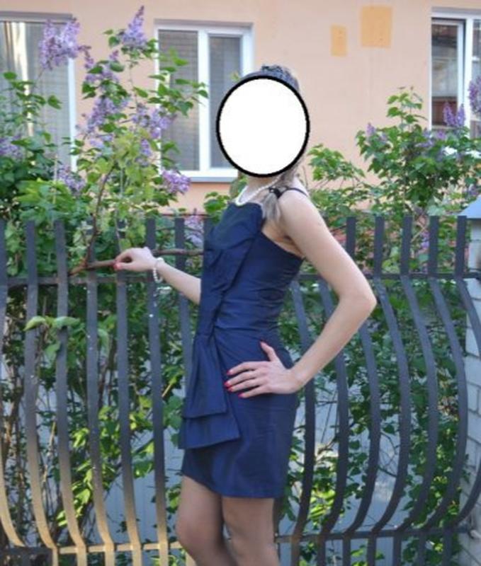 Одягла пару раз на урочистості.на спині замок.перед ошатний-великий бант.колір синій м відливом.