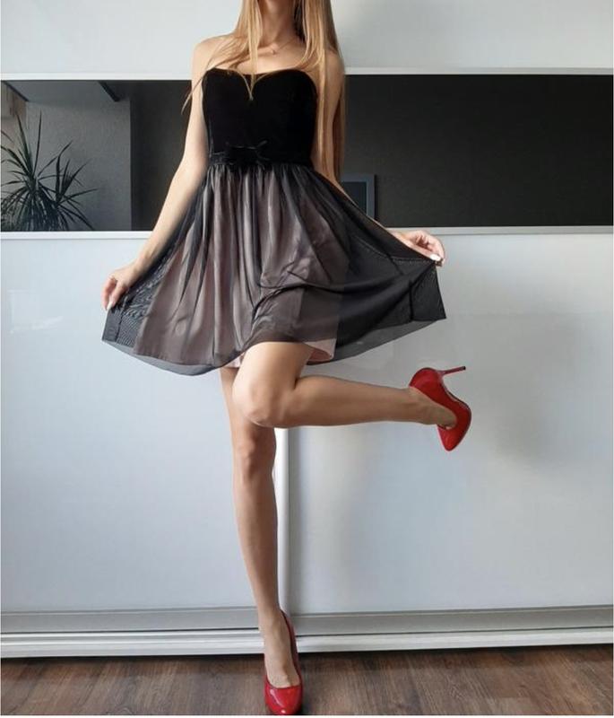дуже красиве маленьке чорне плаття, ззаду на блискавці, до талії - велюрове, низ - шовкова підкладка, зверху-сіточка, сукня в ідеальному стані, слідів шкарпетки немає, є петлі для бретелей, за бажанням можна пристебнути, розмір вказано 36, підійде на хс-з, на дівчину ростом до 165см. заміри: довжина - 66см, пог 36см,піт 32см.