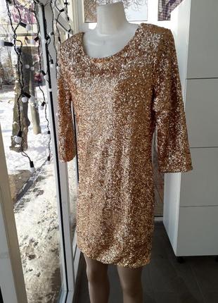 шикарне плаття від європейського виробника Нове☝️☝️☝️ без дефектів і шлюбу якісна паетка, підкладка приємна до тіла...паетка не колеться матеріал...трохи тягнеться, фотму не втрачає заміри: плечі - 40 см ПОГ - 45 см ПОТ - 38 см ПОБІДИ-45 см довжина - 87 см рукав від плеча - 45 см