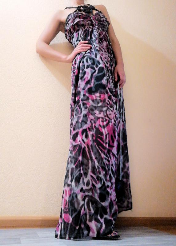 Оригінальна вечірня сукня. Одягнено 1 раз. Довжина від пахви 125 см (загальна +-150, довжина регулюється за допомогою канатів, можна більше зробити). Креп-шифон на підкладці.