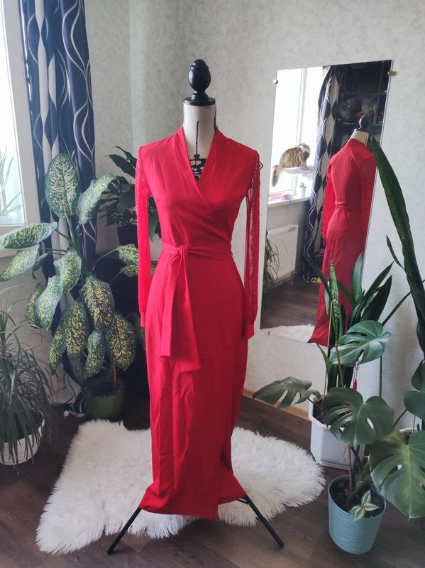 Дуже насичений колір. Плечі 38см Сукню на запах, талія регулюється у великому діапазоні Щільне, підтягуючий Одягалось один вечір