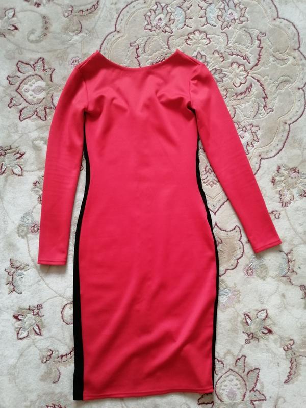 Плаття, яке дуже добре підкреслює фігуру. У новому стані, ні разу не вдягнене. З боків чорні вставки, спинка відкрита, на блискавки по всій довжині.