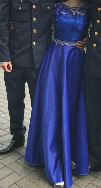 Сукня синього кольору в ідеальному стані, одягалась один раз на випускний. Після хімчистики. Пояс закріплений до сукні. Є підюпник, не просвічується). Ззаду на замочку. Розмір S. Одягалась на ріст 165 см. Підійде як для вечірнього випуску ,так і для важливого вечора. Доставка будь-якою зручною для вас поштою.
