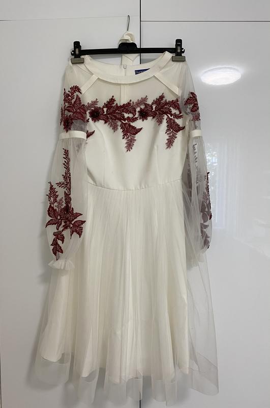 Надзвичайно гарна сукня в кремовому кольорі, оздоблена бордовою вишивкою та поясом. Це чудовий варіант для Вашого особливого дня✨🌺🌸🌷
