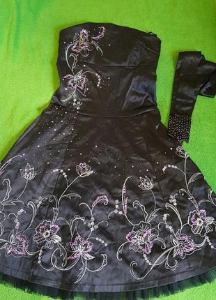 Сукня вечірня з вишивкою. Ефектно виглядає. Лямок немає, є пояс. Надягалось два рази. Підійде дівчинці-підлітку.