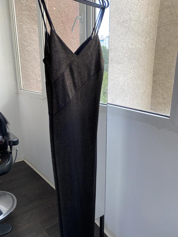 Плаття Bershka Розмір М Довжина 147 Нове, жодного разу не одягнене, без бірки Колір чорний з золотим відблиском Дуже красивий виріз декольте і відкрита спинка, з двох боків розрізи (62cm) Дуже гарно підкреслює фігуру