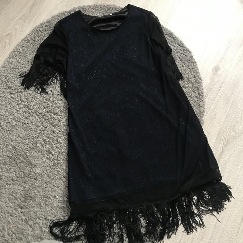вдівали 1 раз на новий рік розмір 44, фасоном вільне підкладка синя блискуча коротша