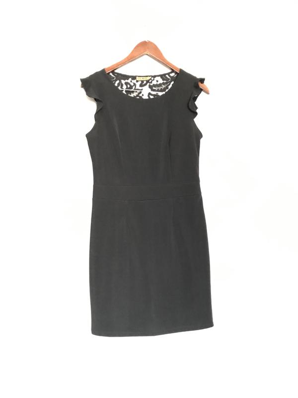Фактурне сукню в рубчик по фігурі з мереживом на спинці і невеликими крильцями, на тонкій підкладці, з боку на блискавці Заміри: пог 43, піт по шву 37, побіди 46, довжина 87