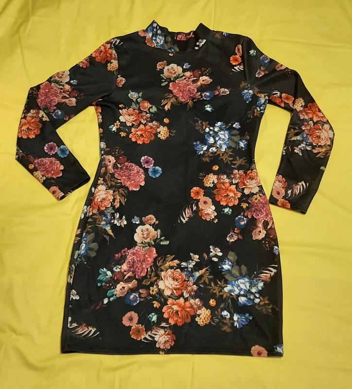 Оригінальне плаття гольф. Барвисті квіти на чорному тлі. Довжина 84см Від плеча до плеча 37см ПОГ 47см ПІТ 39див ПОБІДИ 48см