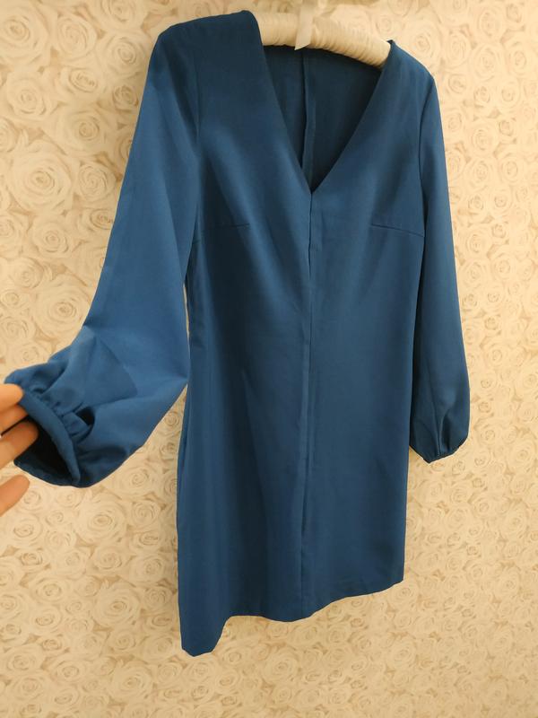 Красивое платье Befree с V-образным вырезом, очень красивого цвета!!! Есть боковая молния. Рукавчики собраны в резинку.Размер М. Одето один раз.