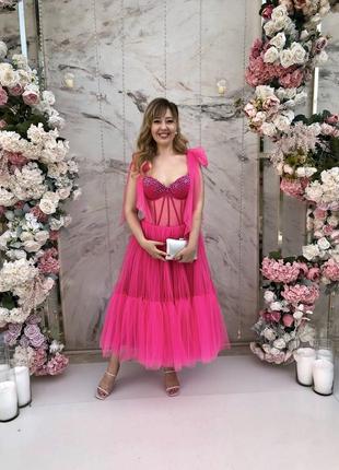 Продам нарядное платье для важных мероприятий. Корсет регулируется, завязочки тоже. Бант делаете такой какой Вам нравится. Камни сваровски. Чашечка - 2В. Размер M - L.