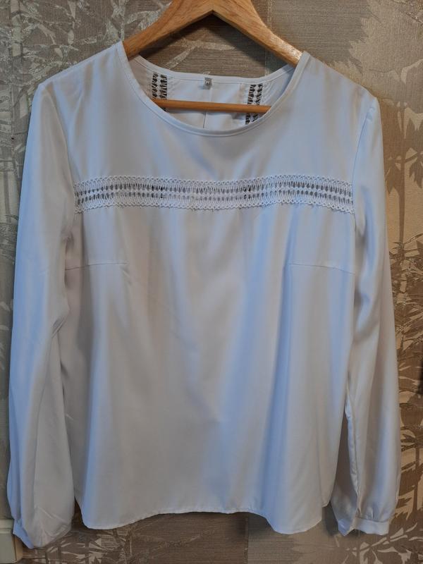 Біла сорочка в ідеальному стані з мереживними вставками на грудях та спинці ззаду красиві складки розмір 46-48