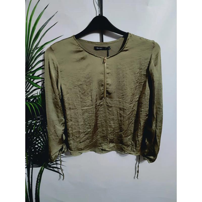 Блуза з ефектом жатки( не потрібно прасувати) від bershka Розмір ік 8 /S/ Параметри Грудей ПО 54 см Талія ЗА 53см Низ ПО 53 см Довжина 55 см Тканина: поліестер