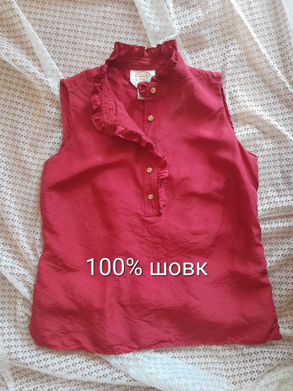 Шовкова стильно вишнева літня блуза Talbots Talbots - американський бренд жіночого одягу, взуття та аксесуарів, заснований в 1947 році. Дуже красива та стильно блузка Цікавий воріт - можна можна повністю застебнути гудзики, буде стійка. Просто шикарний шовк - дуже щільний, довговічний, тримає форму Колір вишневий, темно-червоний З боків маленькі розрізи Гарно виглядає і сама по собі, і під піджак Стан чудовий, єдине - є малопомітні полосочки від прання (останнє фото), можна попробувати виправити, але реально практично не помітно Лінійка на невисокий зріст Розмір 8 американський, десь С-М, орієнтуйтесь на заміри Довжина по спинці 57см, плечі 34с, під руками 48см, ПОТ 45см