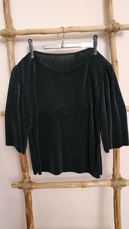 блуза чорного кольору із пишними рукавчиками та вкорочена із низк
