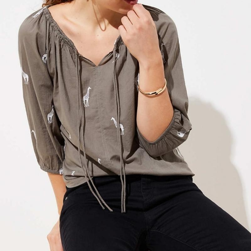 Блузка кофта топ вишиванка з жирафами S. Loft/ Ann Taylor Легка і невісома блуза від класного бренду Loft/ Ann Taylor вишита гарненькими жирафиками, розмір S, вільний край, 100% коттон по відчуттю тканини як тоненький льон