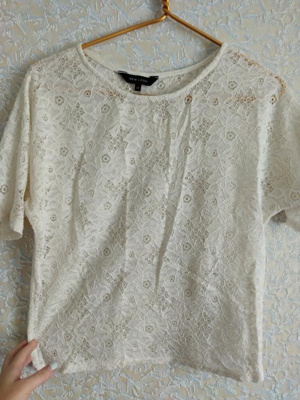легка гепюрова блуза довжина по спинці 52 см довжина рукава 25 см ПОГ 45 см