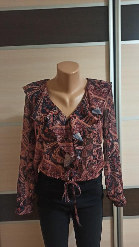 Вказано розмір 8 Довжина 44см ПОГ 45см ПОТ 45см Рукав 43см, від плеча 57см Є пара затяжок, малопомітні при такому забарвлення Тканина просвічує