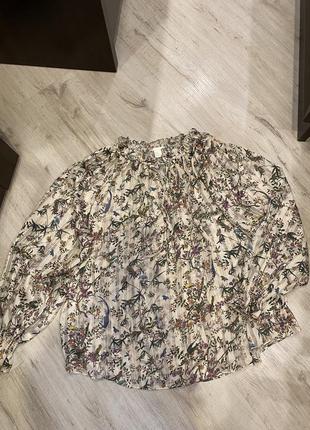Блуза H&M в красивый принт в вольном стиле, состояние идеальное. Размер указан 44 (подойдёт от размера М до XL) От подмышки до подмышки 61 Рукав от горловины 69 (линия плеча не обозначена) Длина 66