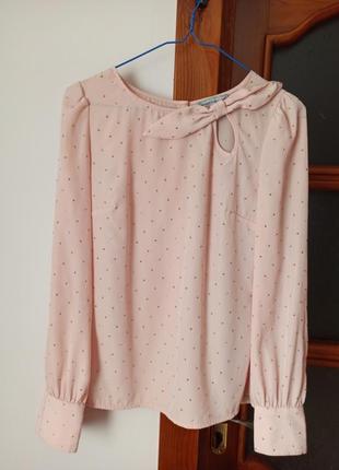 Блуза в хорошому стані, защіпається на гудзики Приємного персикового кольору Рукава легенький ліхтарик Біля шиї гарний бантик що робить її вишуканою 🌹