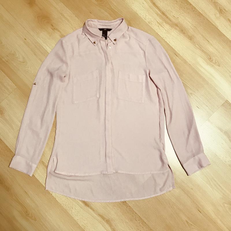 Блуза в хорошем состоянии,сзади на спинке 2 маленькие точечки,мало заметны.На этикетке написано 34,но подходит вполне на 36(S).Сзади удлинение