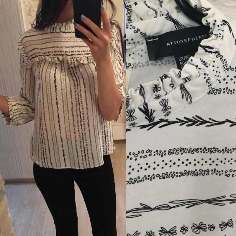 Блуза Atmosphere размер M/L. Состояние идеал! Ткань приятная, натуральная. Длина 54 см, под руками 49 см, рукав 44 см💰250 грн
