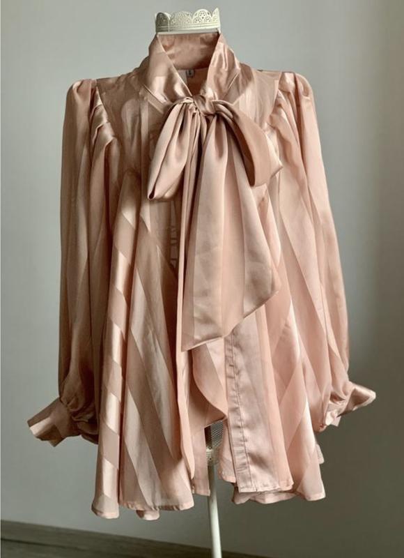 Блуза легка і невагома, дуже розкішно виглядає! Пишний крій, бант із стрічок. Розмір ХЛ/ХХЛ/ХХХЛ Заміри: довжина 60, пог 80, рукав 60.