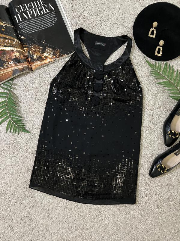 Для більш точного визначення, виміри, порівнюйте із вимірами подібної речі, а не зі своїми обсягами. Шифонова блуза топ в блискітках. Оригінальний крій. Є підкладка. Стан: ідеальний. Дефекти: немає. Розмір на бірці: не вказаний. (Виміри виробу вимірюються в напівобхваті, а не від шва до шва!) Виміри виробу : напівобхват грудей 54см., напівобхват талії 56см., напівобхват низ 67см., довжина по спині 74см. довжина від плеча 79см. Склад тканини: 100% поліестер. Країна виробник: Китай. Бренд: NEXT. Оплата і доставка: Оплата на картку монобанк. Бронювання на оплату тільки 24г. При змінах наміру купувати обов'язково повідомляйте! Доставка: На час введення воєнного стану уточнюйте чи можлива доставка до Вашого пункту. Актуальні новини можна уточнити на сайті перевізника та за номером телефону контакт-центрів. Не забудьте ПІДПИСАТИСЯ щоб бути в курси всіх новинок та розпродажів!