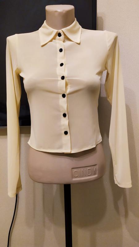 Стильна сорочка-топ лимонного кольору.Пог-41,Пот-33,довжина-43.Нова,із запасним гудзиком.