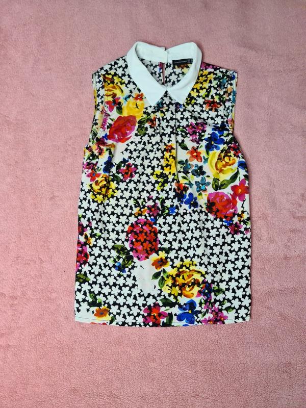 Продам квітковий блузу з білим коміром. У відмінному стані. Розмір s-m.