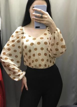 Блуза с объемными рукавами от Vero Moda Размер: на наборе XS, но подойдет также на S и M Стан идеален, есть подклад Пог-41 Рукав -68 Длина-37 92% полиэстр 8% еластан