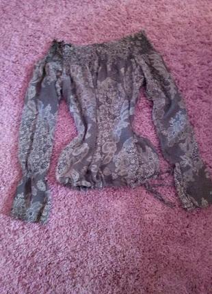Чудова жіноча блузка вільного крою. За рахунок гумок блузочку можна опускати на плічка. Низ зав'язується на шнурочок. Розмір підійде як на 42 так і на 44. Звертайтесь