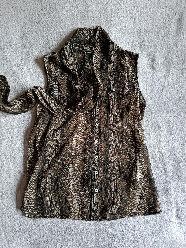 Дуже красива блуза з бантом. Спереду є кармани, бюст не просвічується.