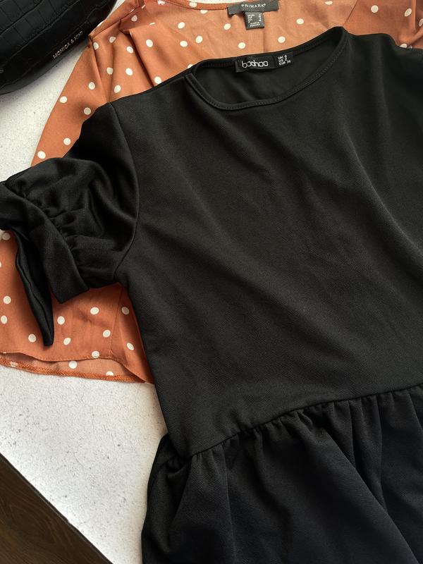 Короткий рукавчик, есть завязочка, по бирке маленькая, но подойдет и на больший размер, тянется