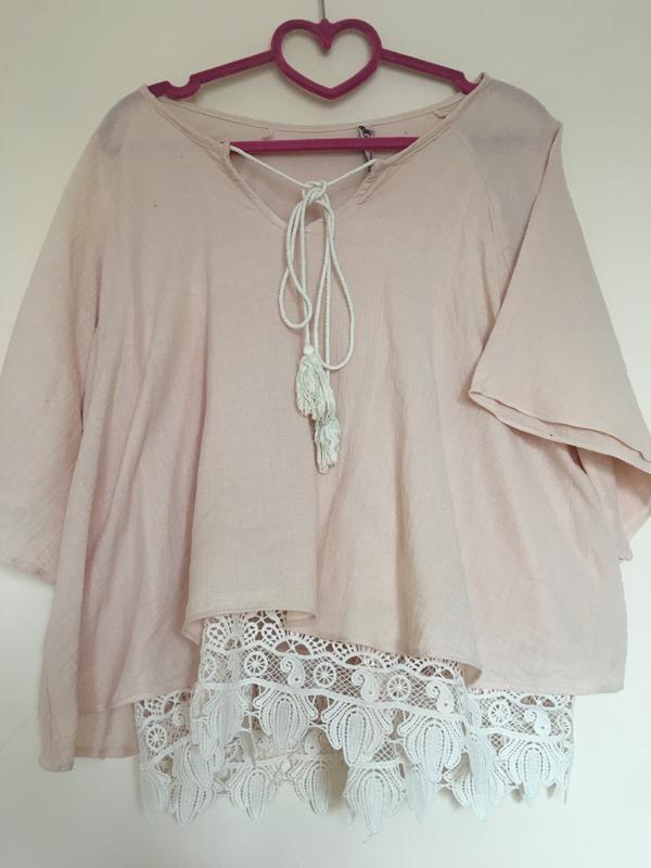 Оригинальная блузка, комбинированная, двухслойная, с кружевом