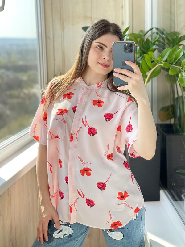 Вільна рожева блуза сорочка в квітковий принт 1+1=3