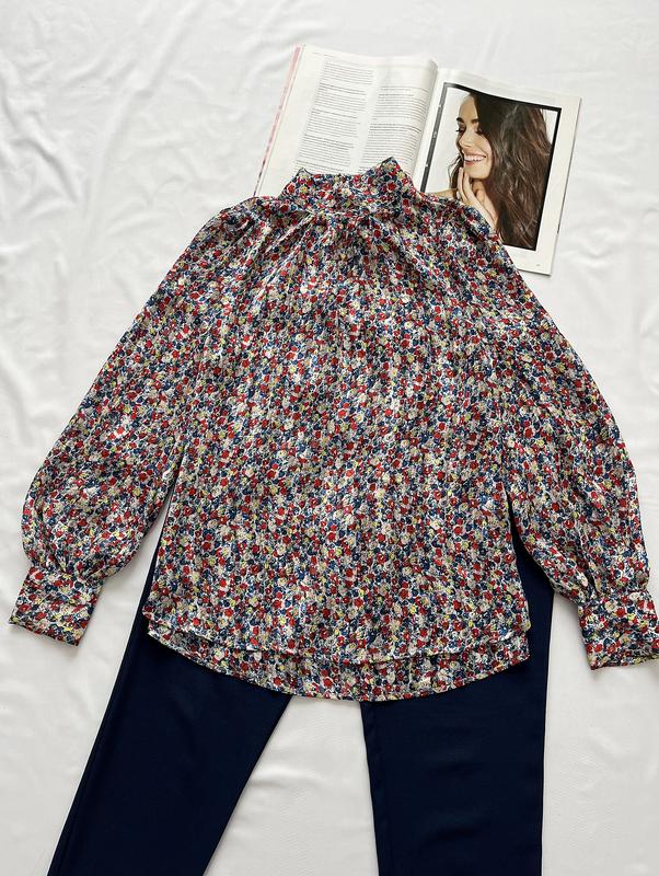 Размер производителя: XS ПОГ 50 см , ПОТ 53 см, ПОБ 55 см, Длина блузы 60/65 см. Длина рукава от горловины 69 см Материал: шифон, не просвещается. Состав на бирке: 100%полиэстер. Б/у в идеальном состоянии, есть незначительные потертости на некоторых пуговках(фото 7), в носке невидно.