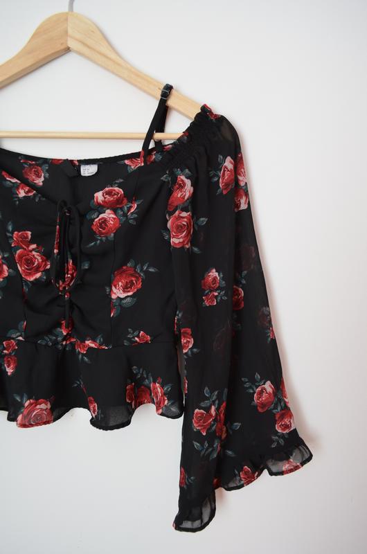 Квіткова блуза, ідеальний варіант на Весну 🌸😍 Легенький шифон, рукавчики вільного крою, спускаються нище плечиків, є бретелі