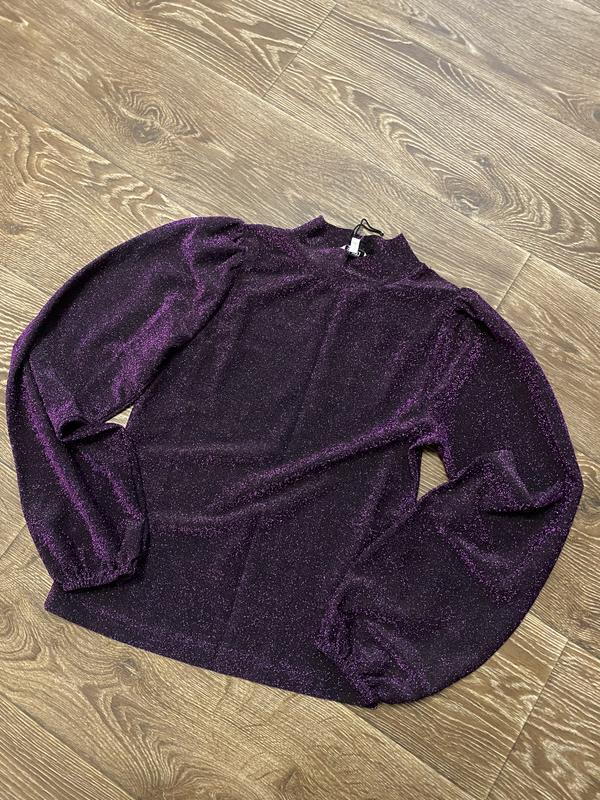 Красивая блуза,рукав фанарик.Ткань красиво переливается, цвет черно-фиолетовый.Нова!Размер подойдет и на см хотя указано xs