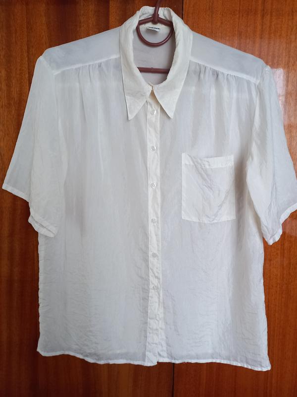 застібка на гудзиках колір -більш молочний заміри: по плечах - 42 см ПОГ - 51 см ПОТ -49 см ПОБ - 51 см довжина від коміра - 65 см довжина рукава - 26 см ПОнизу - 49 см висота коміра- 8 см