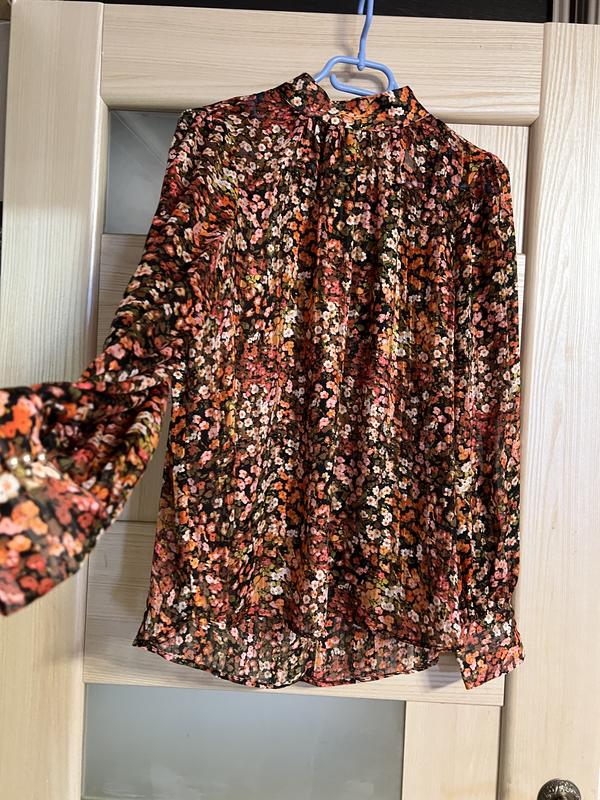 Дуже ніжна, повітряна блузка. Розмір М. Вільного крою, подовжена. Красиві золотисті круглі ґудзики на манжетах і ззаду.