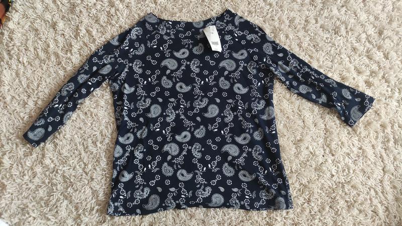 Котонова блуза гарний темно-синій колір і білийпринт крій прямий, рукав три четверті