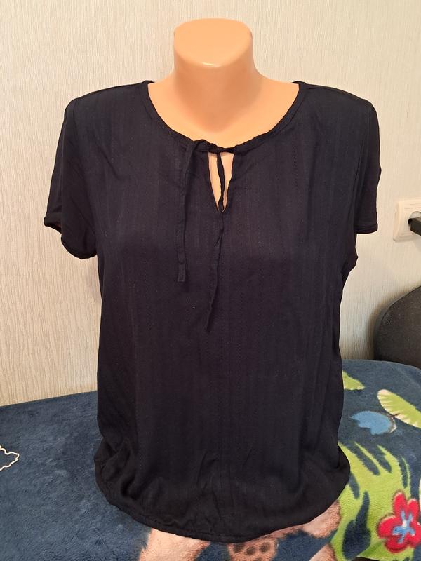 футболка віскоза в ідеальному стані без дефектів низ іде ризинка ззаді просто котон,без візерунка колір темно синій розмір вказаний М